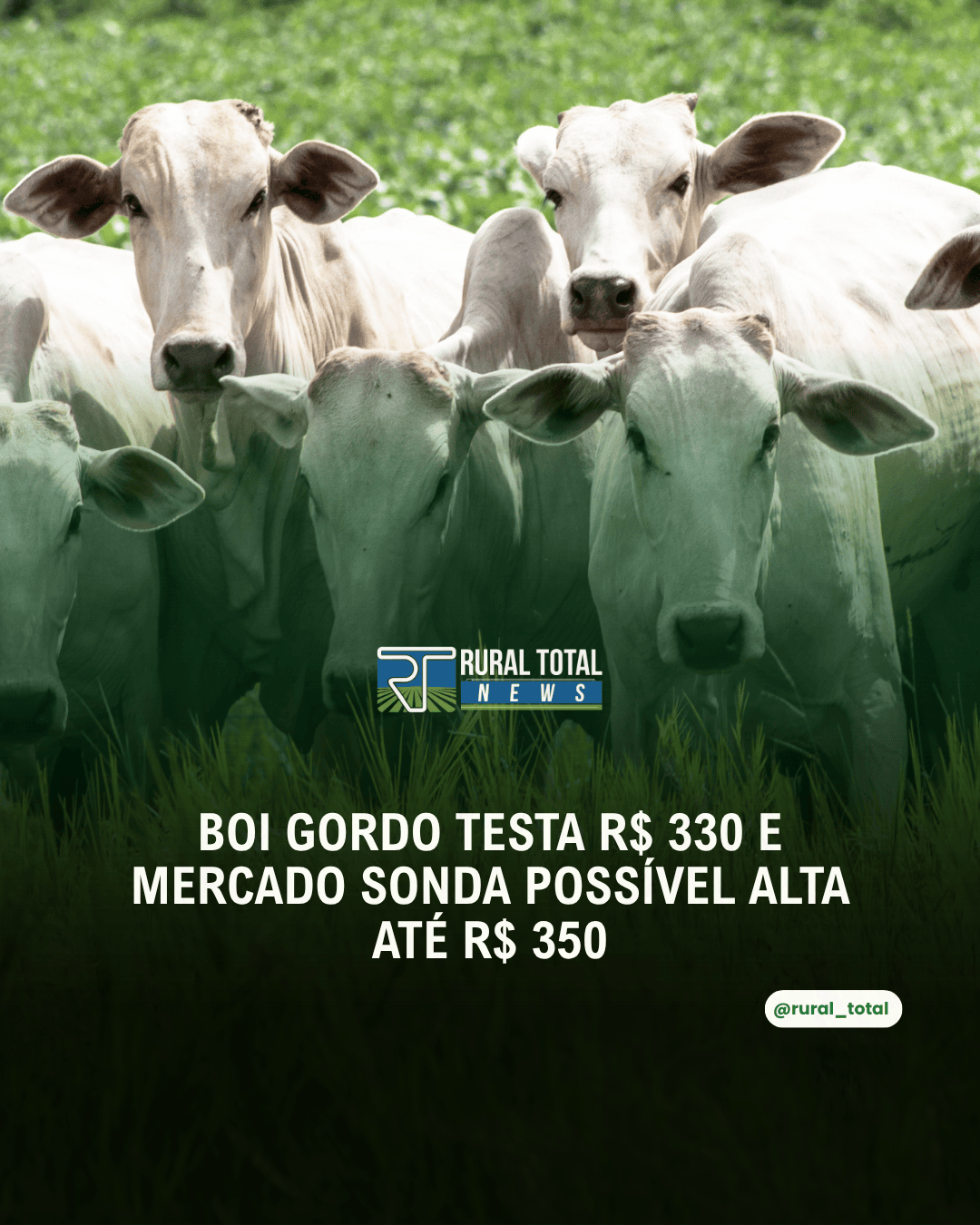 Cotação do boi gordo volta a subir e pode alcançar R$ 350 por arroba até o fim do ano, segundo Cepea e Scott Consultoria.
