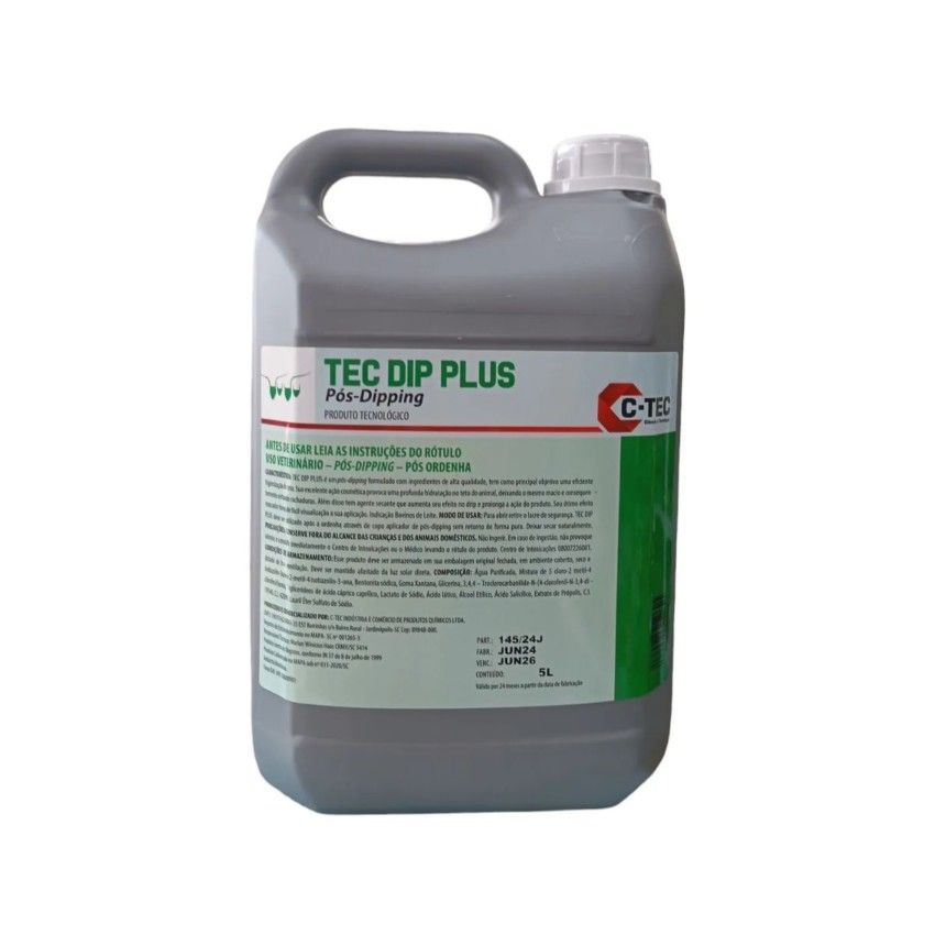 TEC DIP PLUS é um pós dipping formulado com ingredientes de alta qualidade, tem como principal objetivo uma eficiente higienização do teto. Sua excelente ação cosmética provoca uma profunda hidratação no teto do animal, deixando o mesmo macio e consequentemente evitando rachaduras. Além disso tem agente secante que aumenta seu efeito no drip e prolonga a ação do produto. Seu ótimo efeito marcador torna de fácil visualização a sua aplicação. Indicação Bovinos de leite.