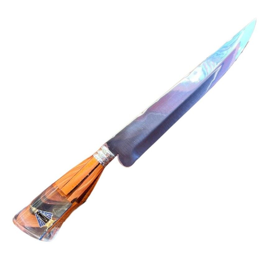 Com uma lâmina em aço de alta resistência, a faca alia beleza e funcionalidade, sendo perfeita tanto para quem deseja uma peça de uso quanto para colecionadores que valorizam objetos exclusivos e cheios de significado.