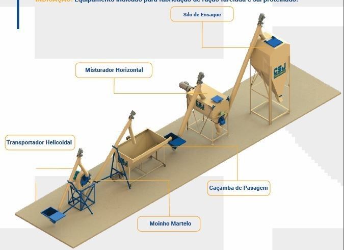 INDICAÇÃO: Equipamento indicado para fabricação de ração farelada e sal proteinado.
