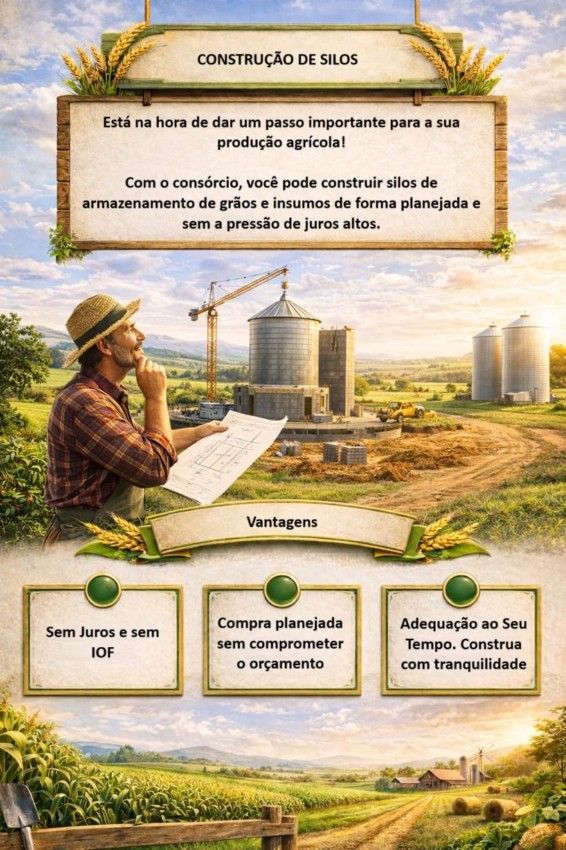 Ao construir silos, você garante a eficiência no armazenamento de suas colheitas, evita perdas e maximiza seus lucros. O consórcio é a maneira ideal de investir em infraestrutura de forma inteligente e segura.