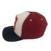Este modelo conta com aba na preto e a cabeça na combinação vinho com branco,