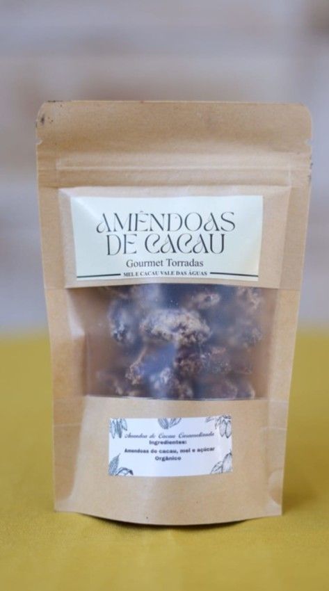 Amêndoas de cacau premium, cuidadosamente selecionadas uma a uma e secas exclusivamente ao sol, preservando todo o sabor e suas propriedades naturais. Após a torra perfeita, são delicadamente caramelizadas com açúcar de coco e mel, resultando em uma combinação única de crocância, aroma e doçura equilibrada.