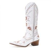 Bota Feminina Artesanal Cano Longo em Couro com Bordados
