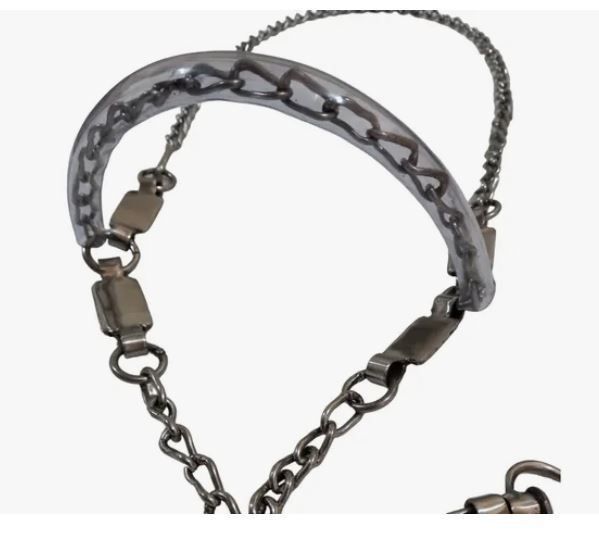 Cabresto de Corrente em Aço Inox com Buçal Regulável – resistente, durável e ideal para cavalos, mulas, muares e até pôneis. Produto reforçado, livre de ferrugem e com proteção no focinho.