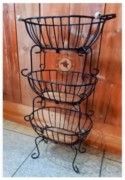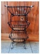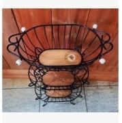 Fruteira de chão artesanal com 3 andares em ferro e madeira de demolição. Design rústico e elegante para decorar e organizar sua cozinha ou ambiente gourmet.