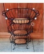 A Fruteira de Chão Oval – Casa do Peão é uma peça de artesanato mineiro legítimo, feita à mão com estrutura em ferro e prateleiras em madeira maciça de demolição, garantindo charme rústico e durabilidade. Com 3 andares, ela é ideal para armazenar frutas, legumes ou até mesmo utensílios, combinando função e decoração com um visual marcante.