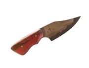 FACA FORJADA EM AÇO SAN MAI COM 3 1/2" DE COMPRIMENTO DE LÂMINA, COM DORSO DE 0,4CM E CABO FEITO COM TALAS DE MADEIRA ESTABILIZADA. PEQUENA E PRECISA, ÓTIMA COMPANHEIRA PARA DIVERSAS ATIVIDADES.