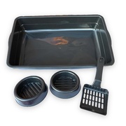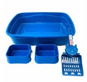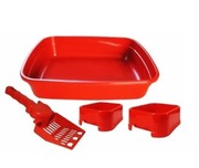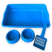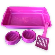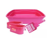 A bandeja é ideal para uso com areia higiênica, enquanto os dois potes servem para água e ração. A pazinha facilita a limpeza diária da bandeja, mantendo o ambiente sempre limpo e agradável.