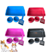 Kit Bandeja Higiênica para Gato com 2 potes e pazinha – praticidade, higiene e conforto para o seu felino.