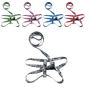 Peitoral de seda tamanho 02, confortável, resistente e ajustável, ideal para cães de porte pequeno. Embalagem com 6 unidades.