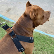 Conta com engate resistente, regulagem firme e argola metálica para guia, proporcionando mais controle e segurança mesmo em cães muito ativos ou musculosos.