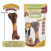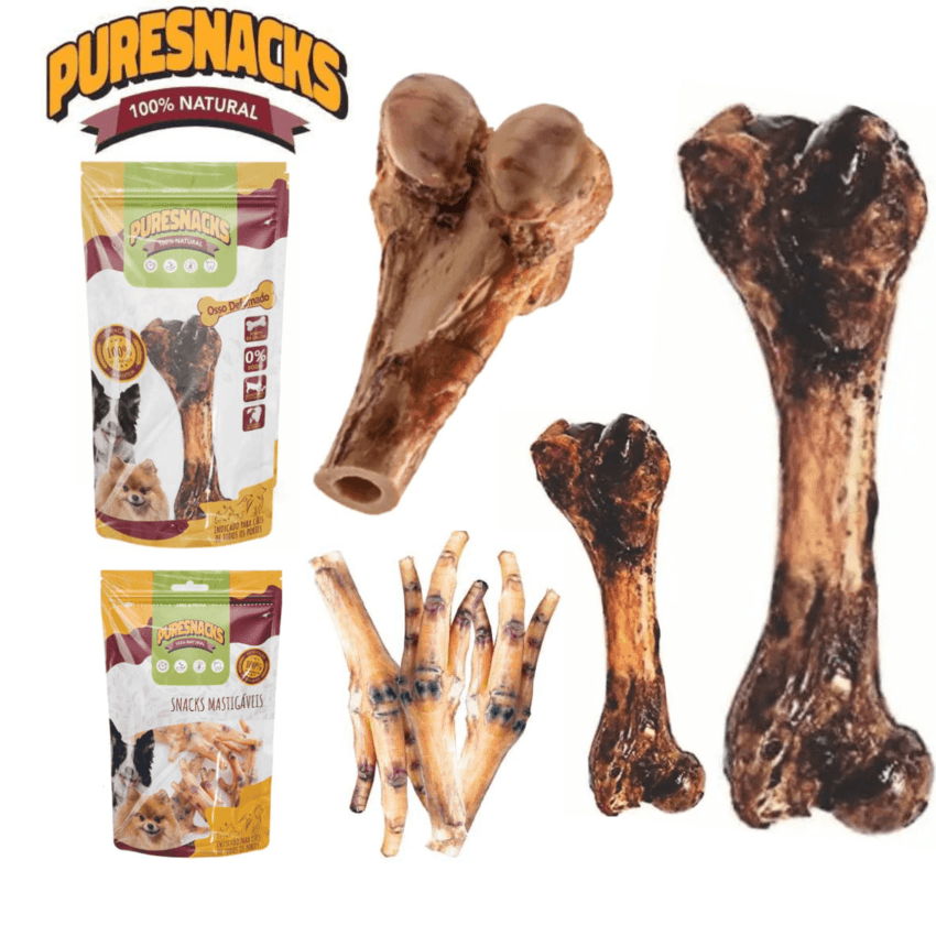Os petiscos Puresnacks Ossos Defumados são feitos 100% de ingredientes naturais — sem conservantes, corantes ou adição de sódio. Preparados para cães de todos os portes, proporcionam uma experiência saborosa e nutritiva com aroma defumado irresistível. A mastigação ajuda na higiene bucal, removendo tártaro e placa, além de fortalecer a mandíbula e manter o pet entretido.