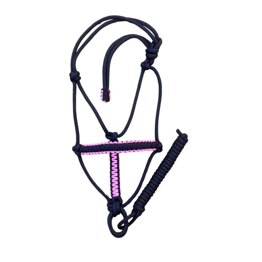 Cabresto 7 Nós Preto com Detalhe Rosa (8mm)