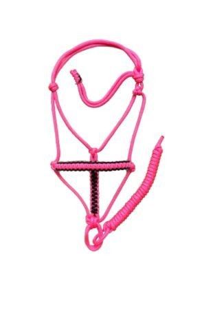 Cabresto 7 Nós Rosa Fluorescente com Detalhe Preto